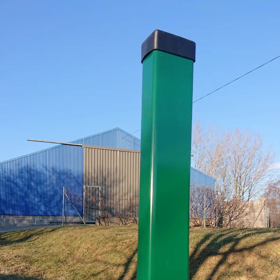 Horganyzott és zöld (RAL6005) színnel színterezett zártszelvényes oszlop
